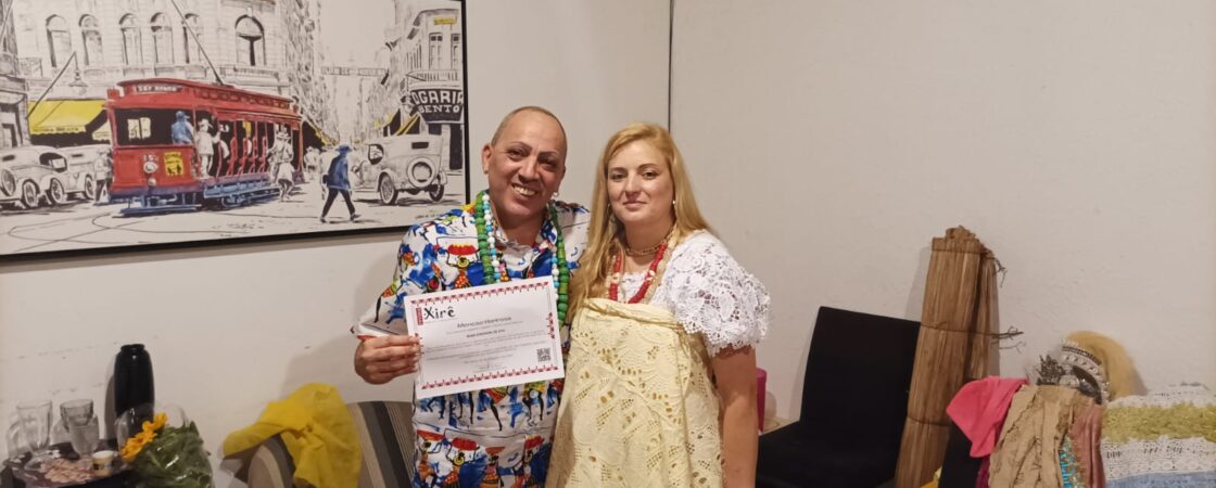Revista Xirê entrega Certificado de Menção Honrosa ao Babalorixá Emerson de Oyá Em 5 de outubro de 2025, a equipe da Revista Xirê realizou a entrega de um Certificado de Menção Honrosa ao Babalorixá Emerson de Oyá. O ato ocorreu na casa Ilê Axé Odé Efun Omin Oxum, situada à Rua Anum Branco ,17 – Bairro Dom José – Embu das artes – SP O certificado foi entregue diretamente nas mãos do homenageado pela Iyalorixá Mônica Ti Osun, representando a revista. A homenagem reconhece o trabalho dedicado do Babalorixá Emerson de Oyá na preservação dos valores e tradições do Candomblé, destacando sua importante trajetória espiritual e seu papel como fortalecedor da comunidade e das raízes da matriz africana. A Revista Xirê orgulha-se de valorizar guardiões da cultura como Emerson de Oyá. |