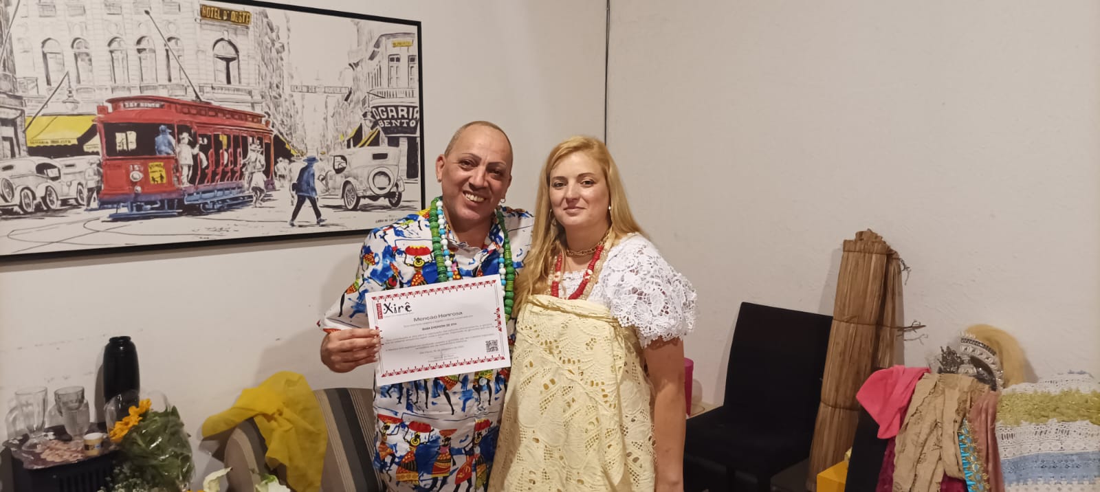 Revista Xirê entrega Certificado de Menção Honrosa ao Babalorixá Emerson de Oyá Em 5 de outubro de 2025, a equipe da Revista Xirê realizou a entrega de um Certificado de Menção Honrosa ao Babalorixá Emerson de Oyá. O ato ocorreu na casa Ilê Axé Odé Efun Omin Oxum, situada à Rua Anum Branco ,17 – Bairro Dom José – Embu das artes – SP O certificado foi entregue diretamente nas mãos do homenageado pela Iyalorixá Mônica Ti Osun, representando a revista. A homenagem reconhece o trabalho dedicado do Babalorixá Emerson de Oyá na preservação dos valores e tradições do Candomblé, destacando sua importante trajetória espiritual e seu papel como fortalecedor da comunidade e das raízes da matriz africana. A Revista Xirê orgulha-se de valorizar guardiões da cultura como Emerson de Oyá. |